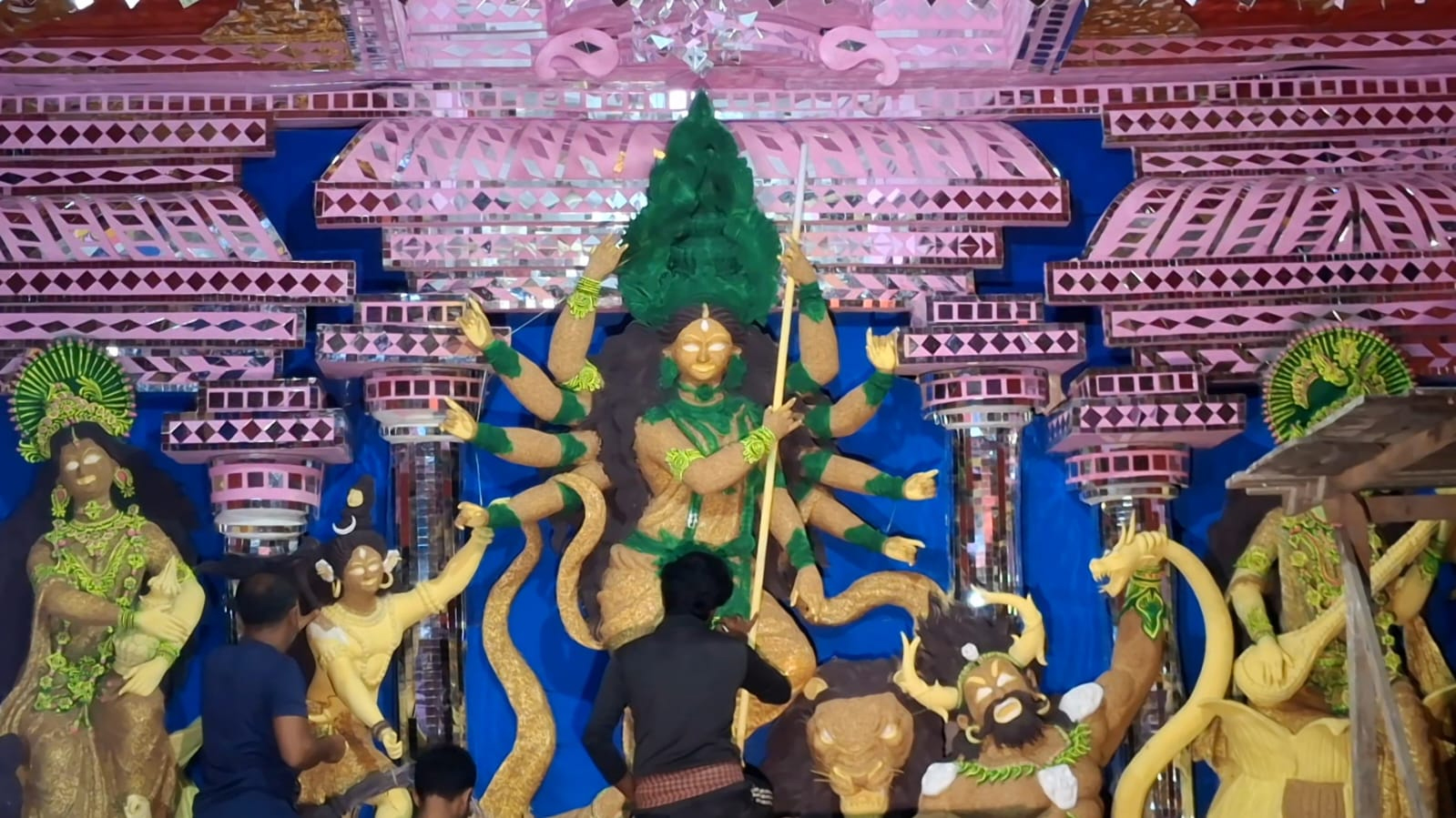 আগামী ২৮ সেপ্টেম্বর ষষ্ঠী পূজার মধ্য দিয়ে আনুষ্ঠানিকভাবে শুরু হবে পূজার মূল কর্মসূচি। এ বছর জেলায় মোট ১০১টি মন্দির ও মণ্ডপে পূজা অনুষ্ঠিত হবে। এর মধ্যে সবচেয়ে আলোচনায় রয়েছে নড়িয়া উপজেলার ভোজেশ্বর ইউনিয়নের ঘোষপাড়া শ্রীশ্রী রাধাগোবিন্দ ধাম দুর্গা মন্দির। সেখানে তৈরি হচ্ছে ব্যতিক্রমী এক প্রতিমা—যার মূল উপাদান সোনালি ধান।