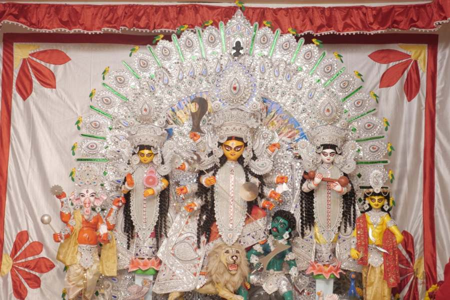 অনেক দিন আগেই একচালা রীতি ভেঙে ‘ভিন্ন’ হন দুর্গা আর তার সন্তানরা। দেবীর কাঠামোতে এখন আমরা সাতটি মূর্তি দেখতে পাই। দেবী মূর্তির দুই পাশে আলাদা কাঠামোতে থাকে তার চার সন্তানের মূর্তি। মধ্যস্থলে দেবী দুর্গা। দুর্গার পদতলে একদিকে সিংহ ও অন্যদিকে অসুর। দেবীর ডান পা সিংহের পিঠে এবং বা পায়ের শ্রী আঙ্গুলী অসুরের কাঁধে স্থাপিত। দেবীর ডানে ধনদাত্রী লক্ষ্মী, পাশে সিদ্ধিদাতা গণেশ। দেবীর বামপাশে বিদ্যাদায়িনী সরস্বতী এবং তার পাশে শৌর্য-বীর্যের প্রতীক কার্তিক।