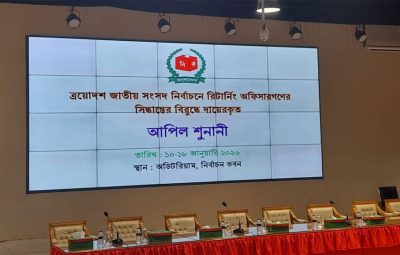 আসন্ন ত্রয়োদশ জাতীয় সংসদ নির্বাচনে রিটার্নিং কর্মকর্তাদের দেওয়া সিদ্ধান্তের বিরুদ্ধে দাখিল করা আপিল আবেদনের শুনানি [.....]